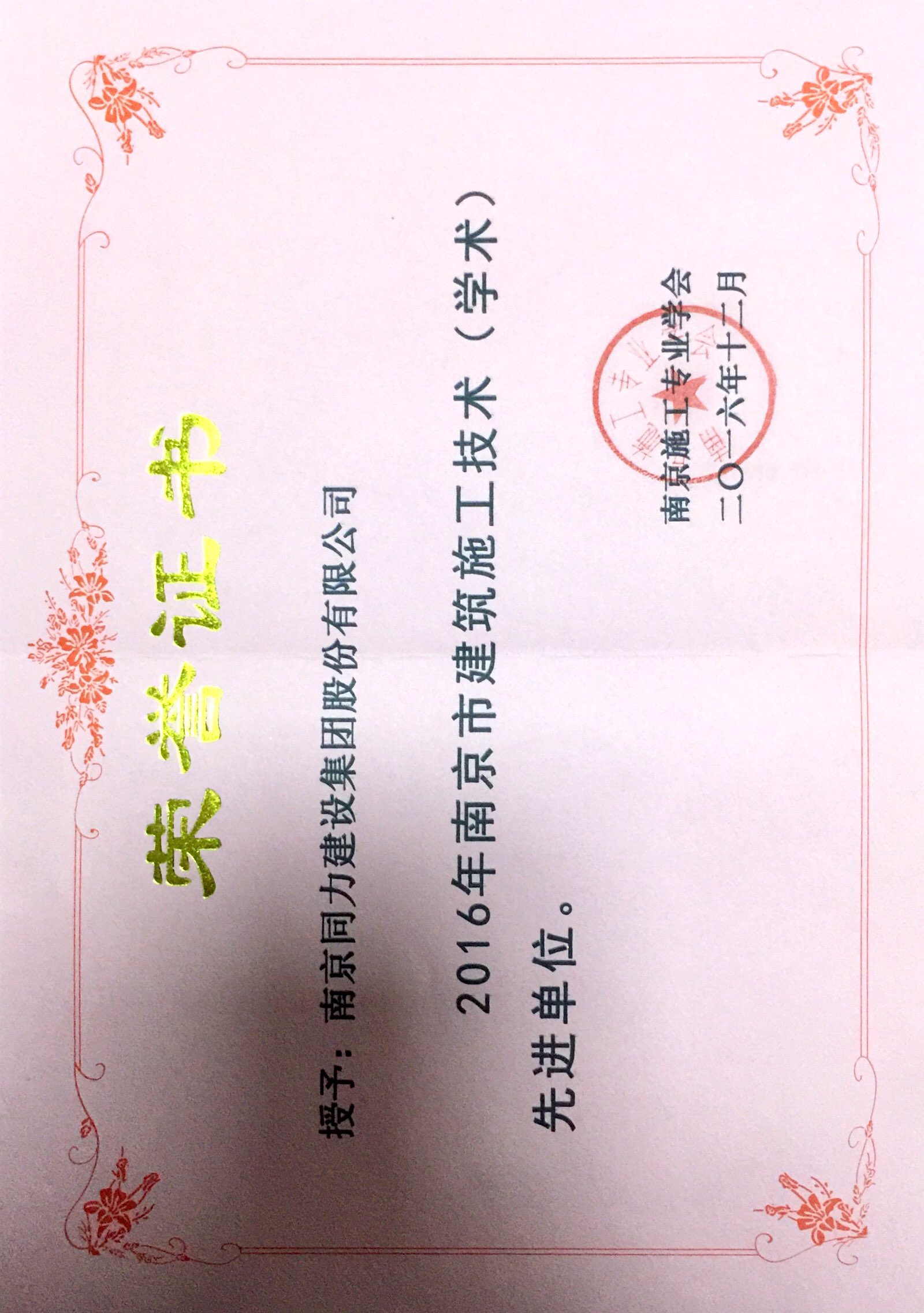 公司獲得《2016年南京市建筑施工技術(shù)(學(xué)...