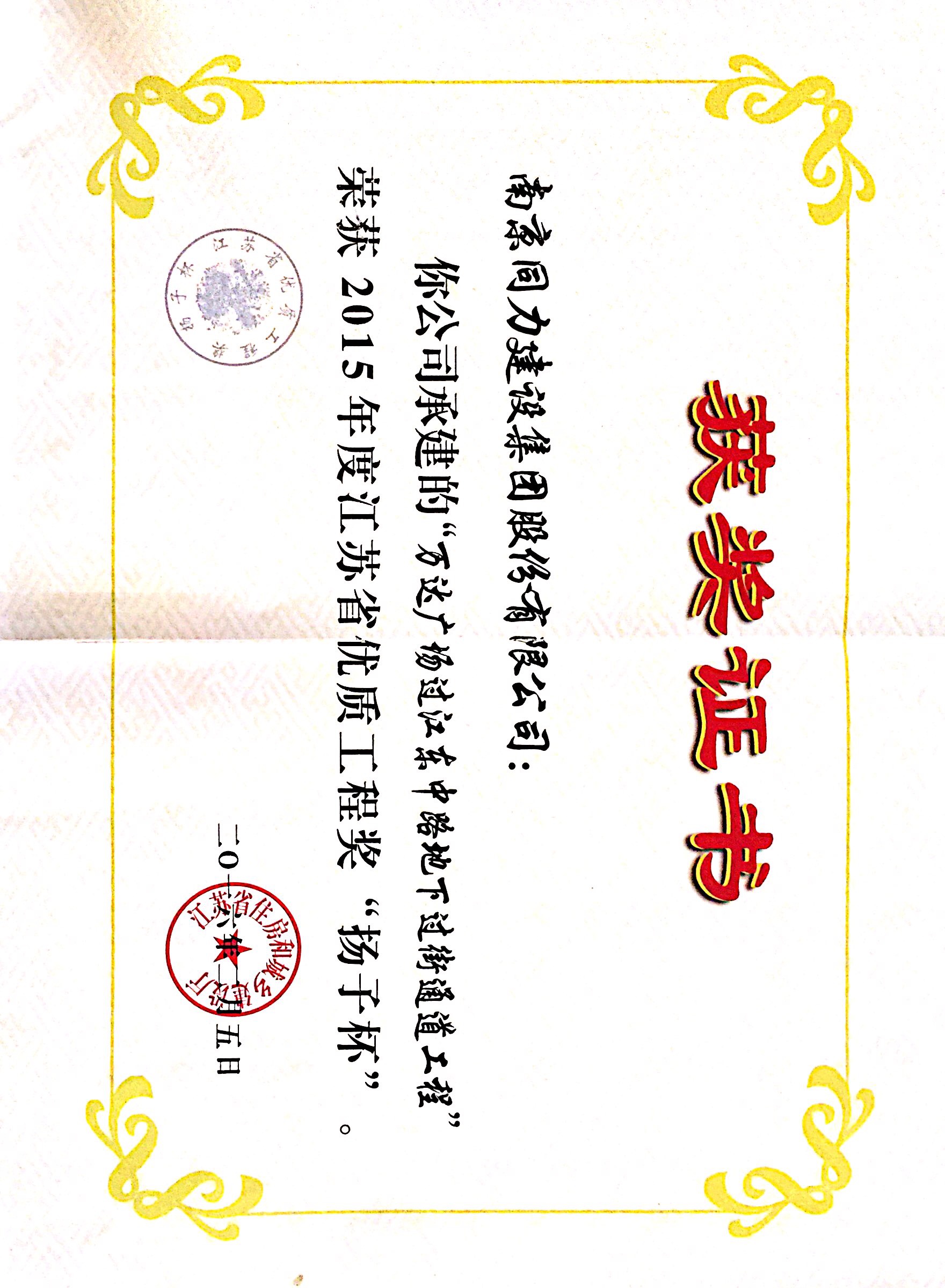 公司被評(píng)為“2015年度南京市城市建設(shè)立...