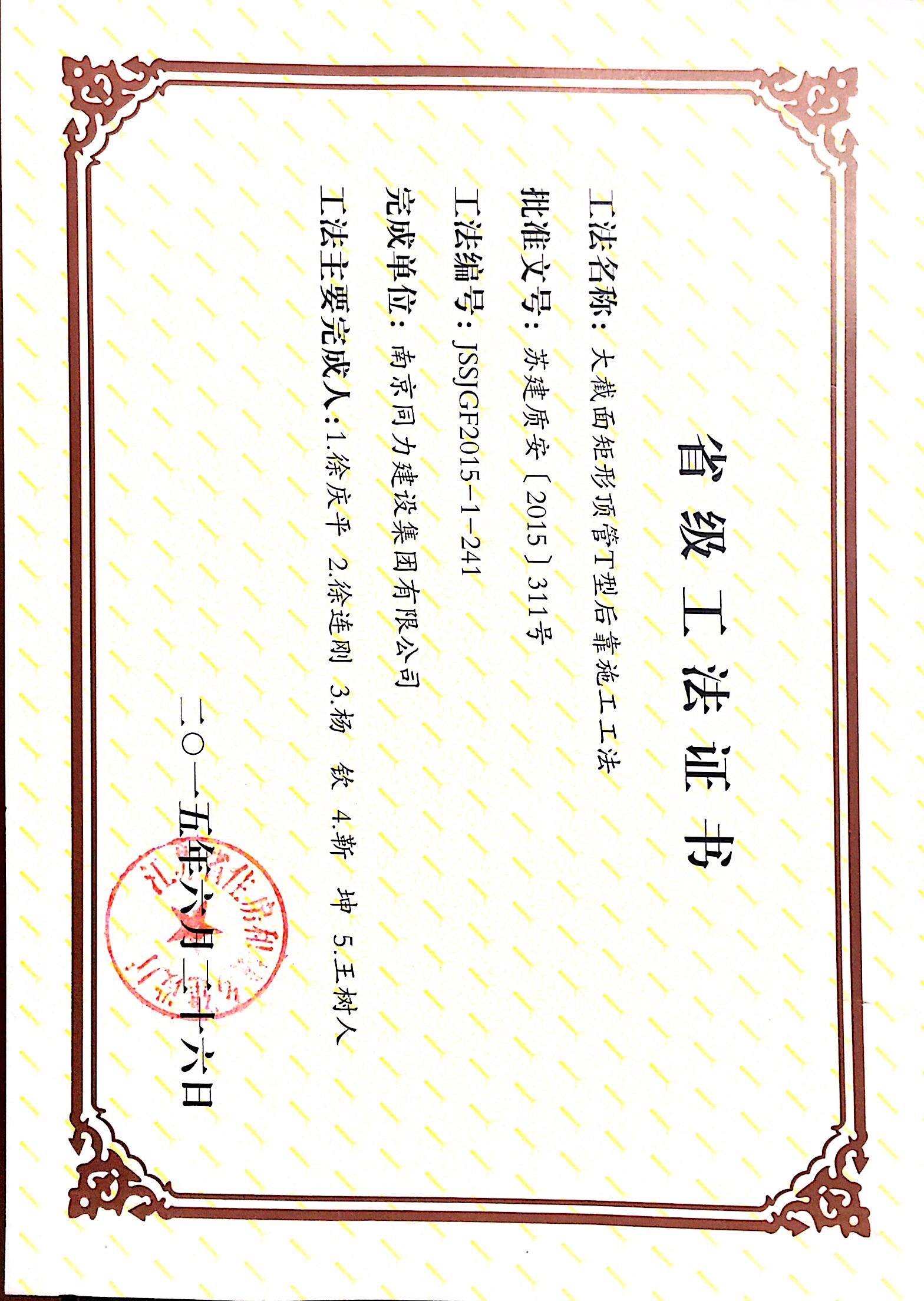 大截面矩形頂管T型后靠施工工法獲得“省...