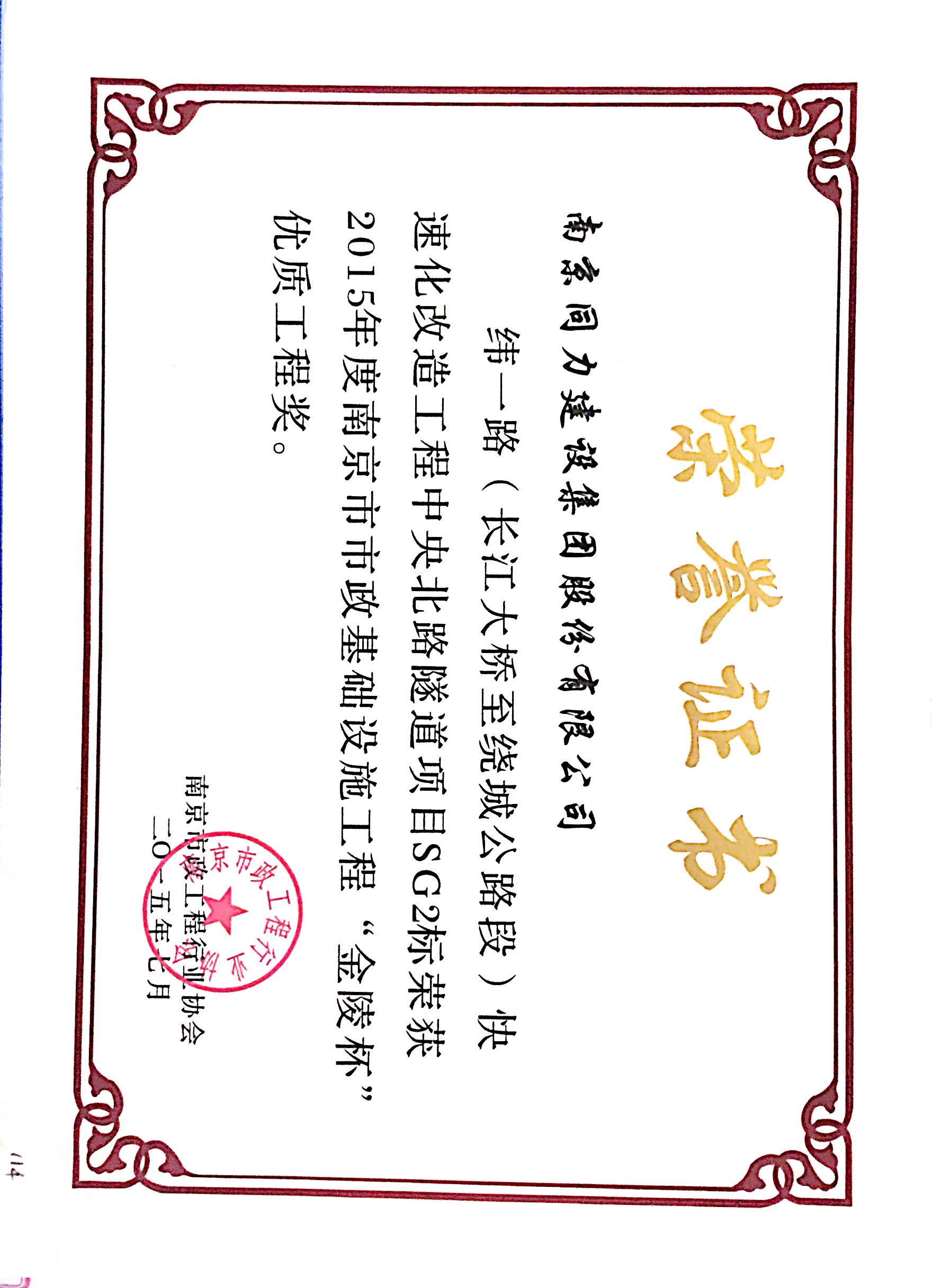 中央北路隧道項(xiàng)目工程獲得“金陵杯”優(yōu)質(zhì)...