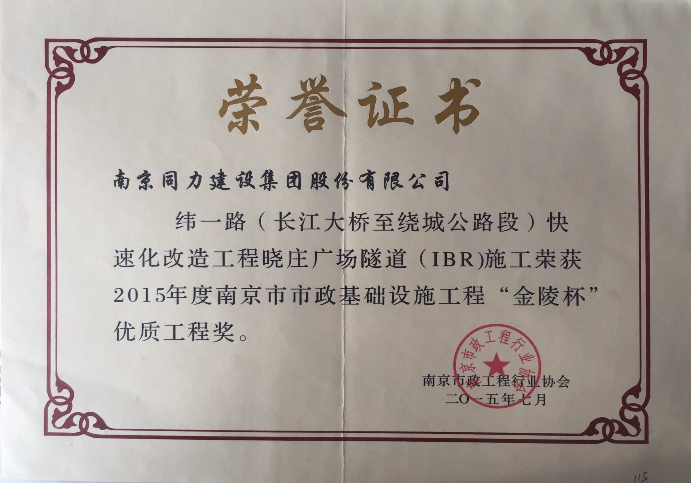 曉莊廣場隧道項(xiàng)目工程獲得“金陵杯”優(yōu)質(zhì)...