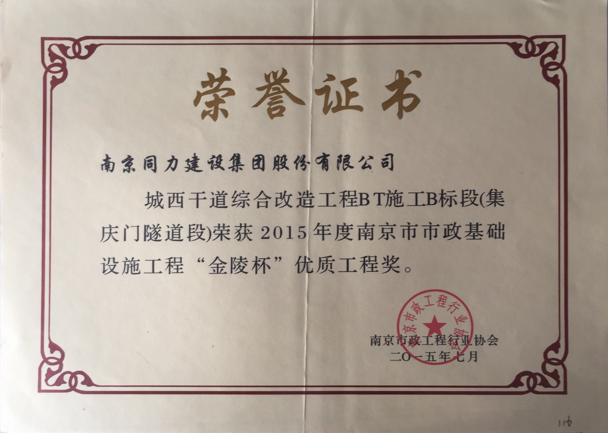 集慶門隧道項(xiàng)目工程獲得“金陵杯”優(yōu)質(zhì)工...